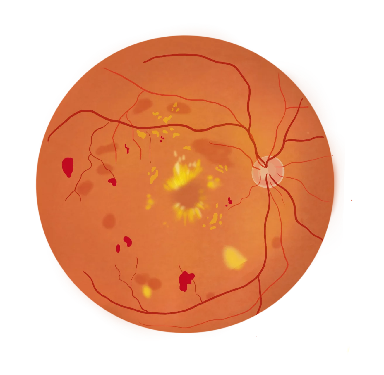 Complication du diabète affectant la rétine. Un suivi ophtalmologique régulier est primordial.